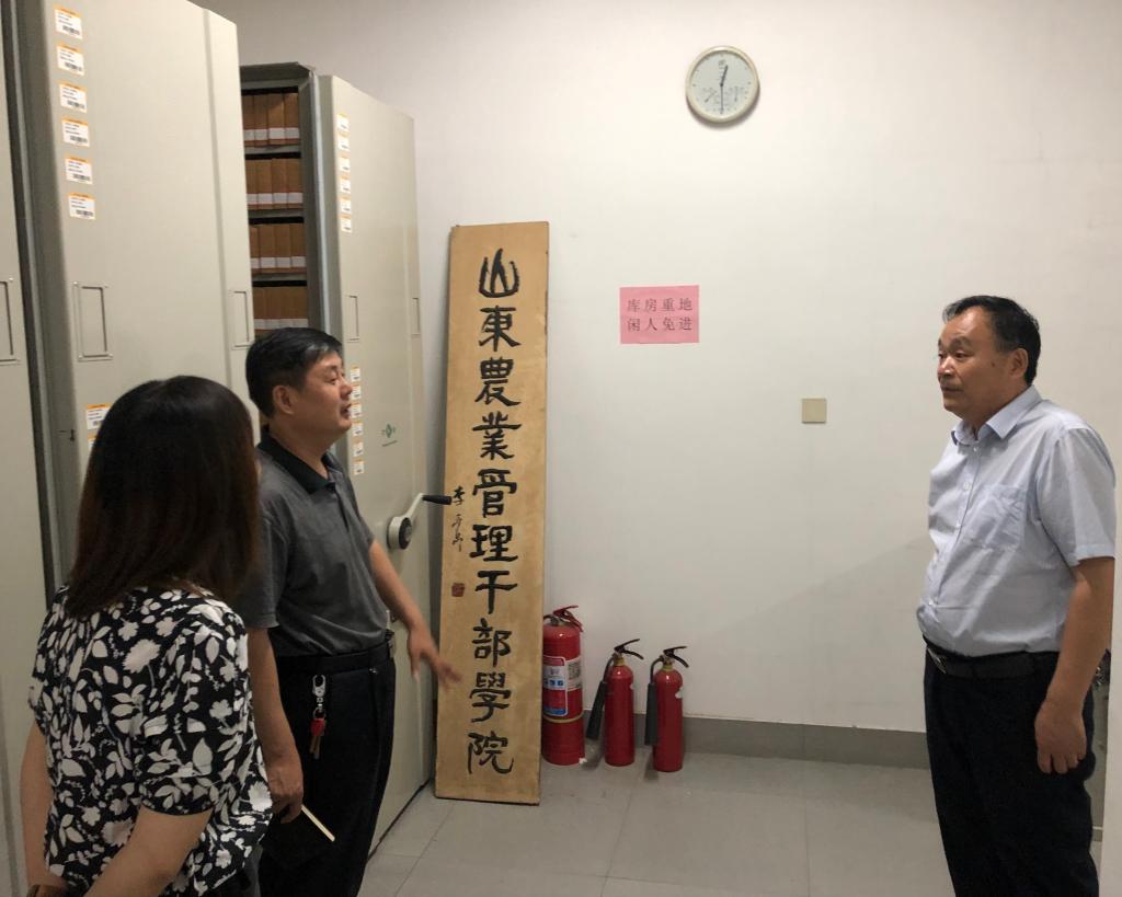 在检查过程中,张业赏同志深入档案室的办公场所和档案库房,仔细检查了各个区域的消防设施、温湿度控制和电器线路等设备运转是否正常,对库房的门窗及防光、防盗等可能存在的安全隐患进行了逐一排查。张业赏强调,档案是历史的原始记录,是学校的宝贵财富和重要资源,要充分认识新形势下加强档案安全工作的重要性,切实履行好确保档案安全的职责使命,做好档案库房的“八防”工作,加强档案信息化管理,切实保障档案安全。