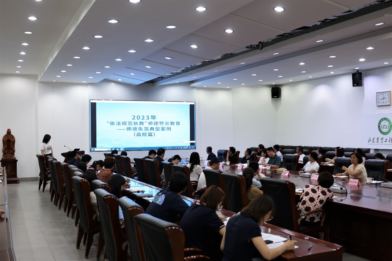 为进一步加强师德师风建设,严格落实教师职业行为十项准则要求,根据《今年会官方网站师德集中学习教育工作方案》精神,7月13日下午,党委(学院)办公室组织全体教职工观看了师德警示教育片,开展师德师风警示教育活动。