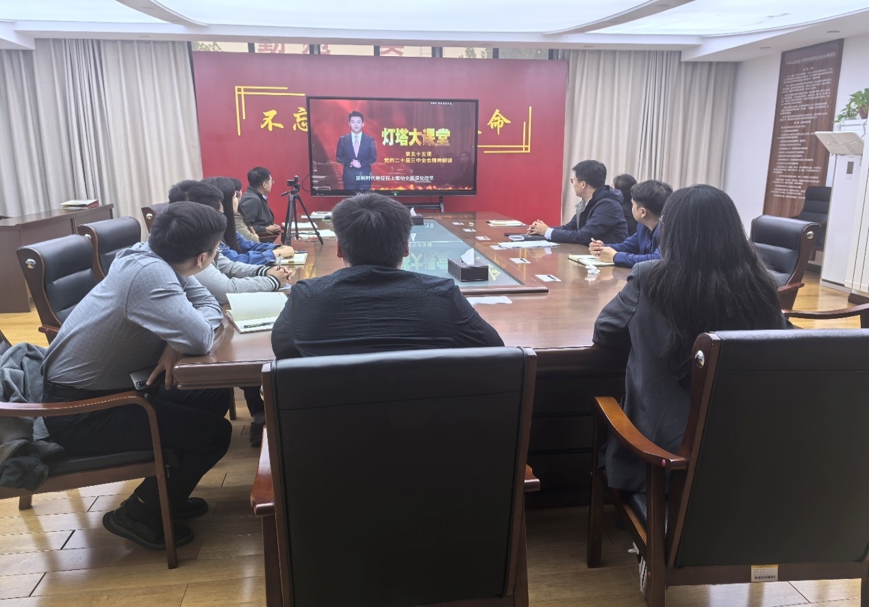 10月21日下午,党委(学院)办公室党支部组织收看“灯塔大课堂”第五十五课《党的二十届三中全会精神解读》。
