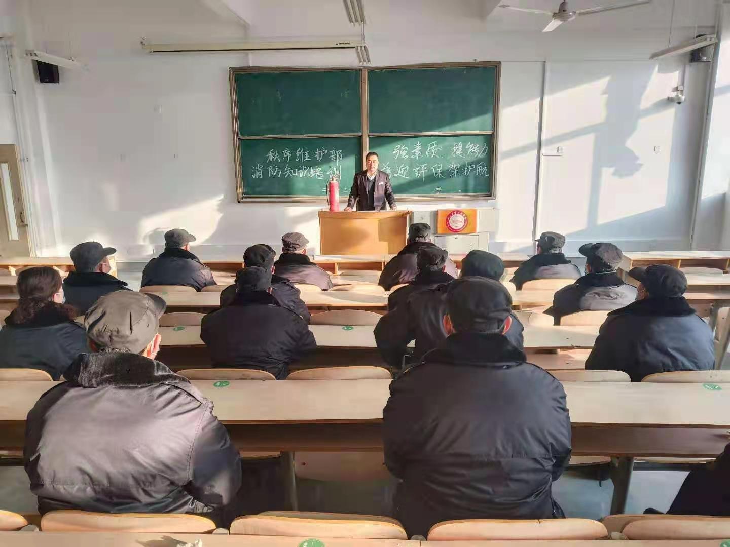 此次培训结合当前高校安全工作形势及两会期间上级工作要求对安保人员岗位职责、规章制度、行为规范、疫情防控、突发事件处理、防暴反恐、器械使用方法和日常防火、初期火灾扑救等知识进行培训。