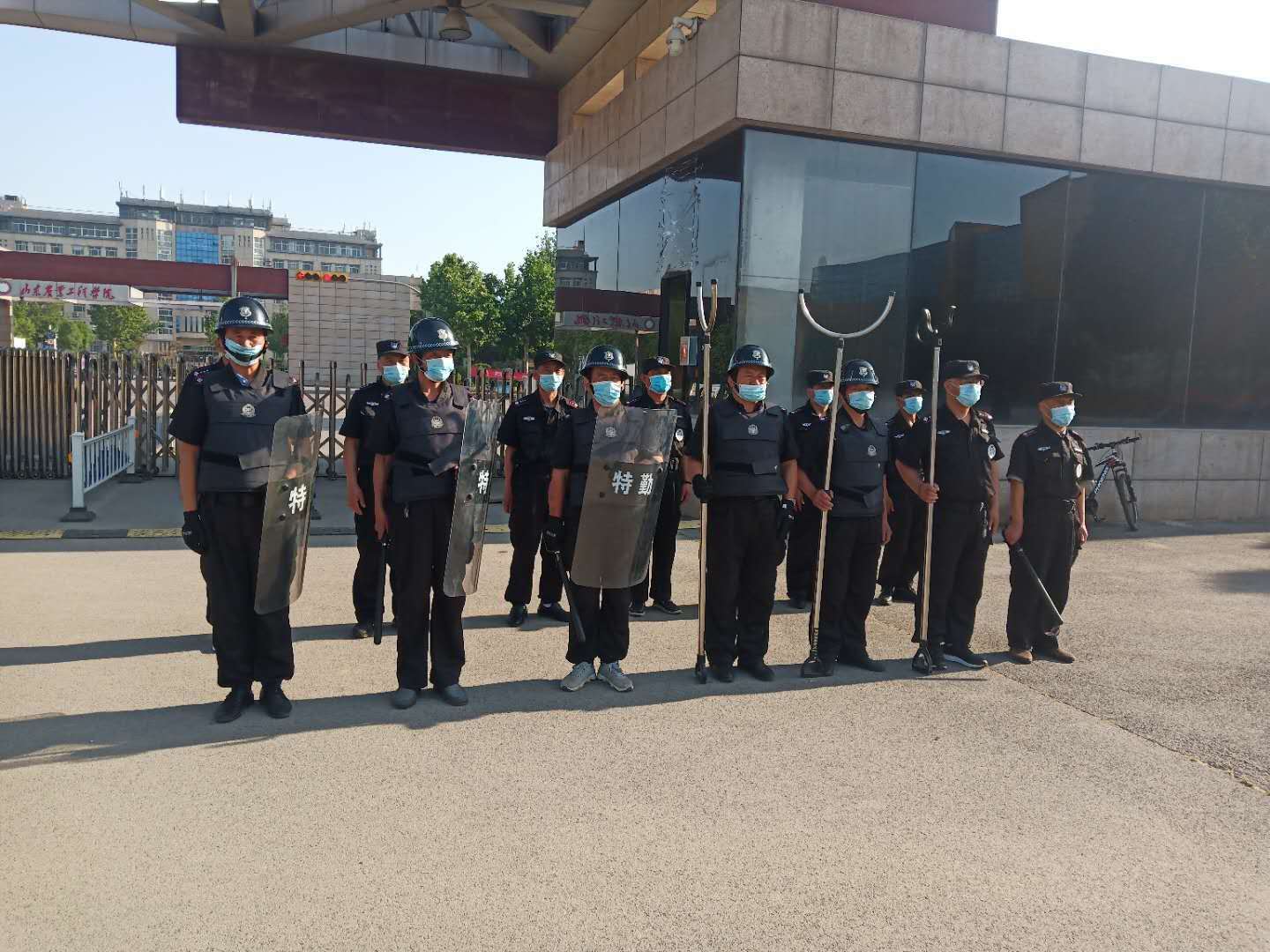 为进一步提高安保人员反恐防暴意识,提高应对校园暴力事件处置能力,最大限度减少突发事件对师生造成的伤害和损失,有力保障疫情期间和两会期间的学校安全稳定。5月22日上午,保卫处在北校区组织济发物业保安开展防暴恐应急专项培训和演练。