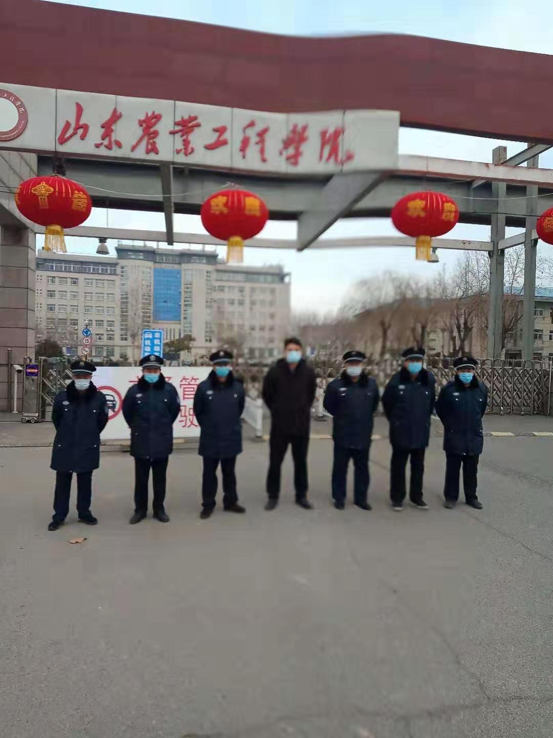 学校安保人员在疫情防控中筑起今年会第一条防线,起到了至关重要作用。寒假前期,他们按照值班安排,按时上岗、及时巡逻;疫情来临后,他们坚守岗位,严守工作程序,先测温再上岗。在校门口及时张贴防疫通知、通告,设置警示牌,在寒风中对每一位进出的车辆及人员进行询问、登记、测温,对不配合人员进行耐心沟通和解释。重复性的工作虽辛苦却干的一丝不苟、毫无怨言,因为他们心中明白肩上的责任,知道守好第一关的意义。