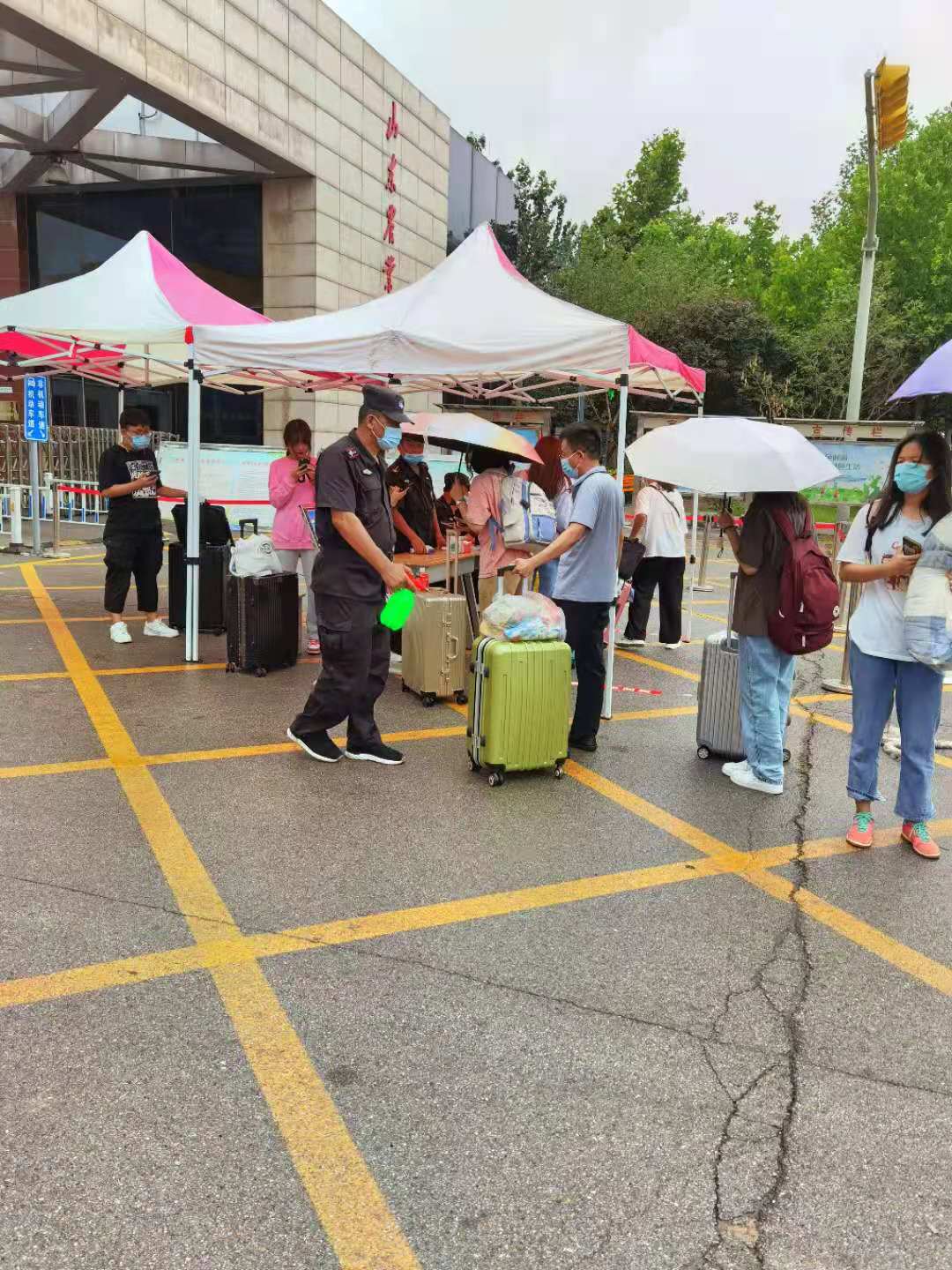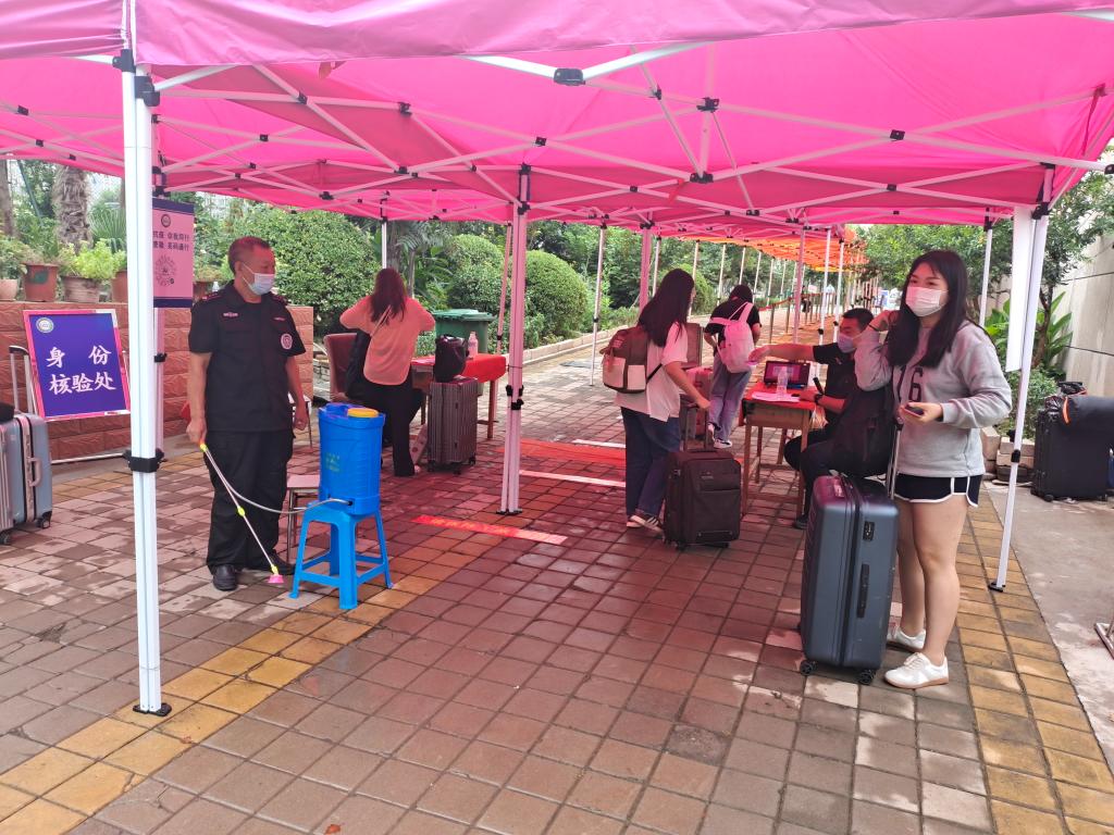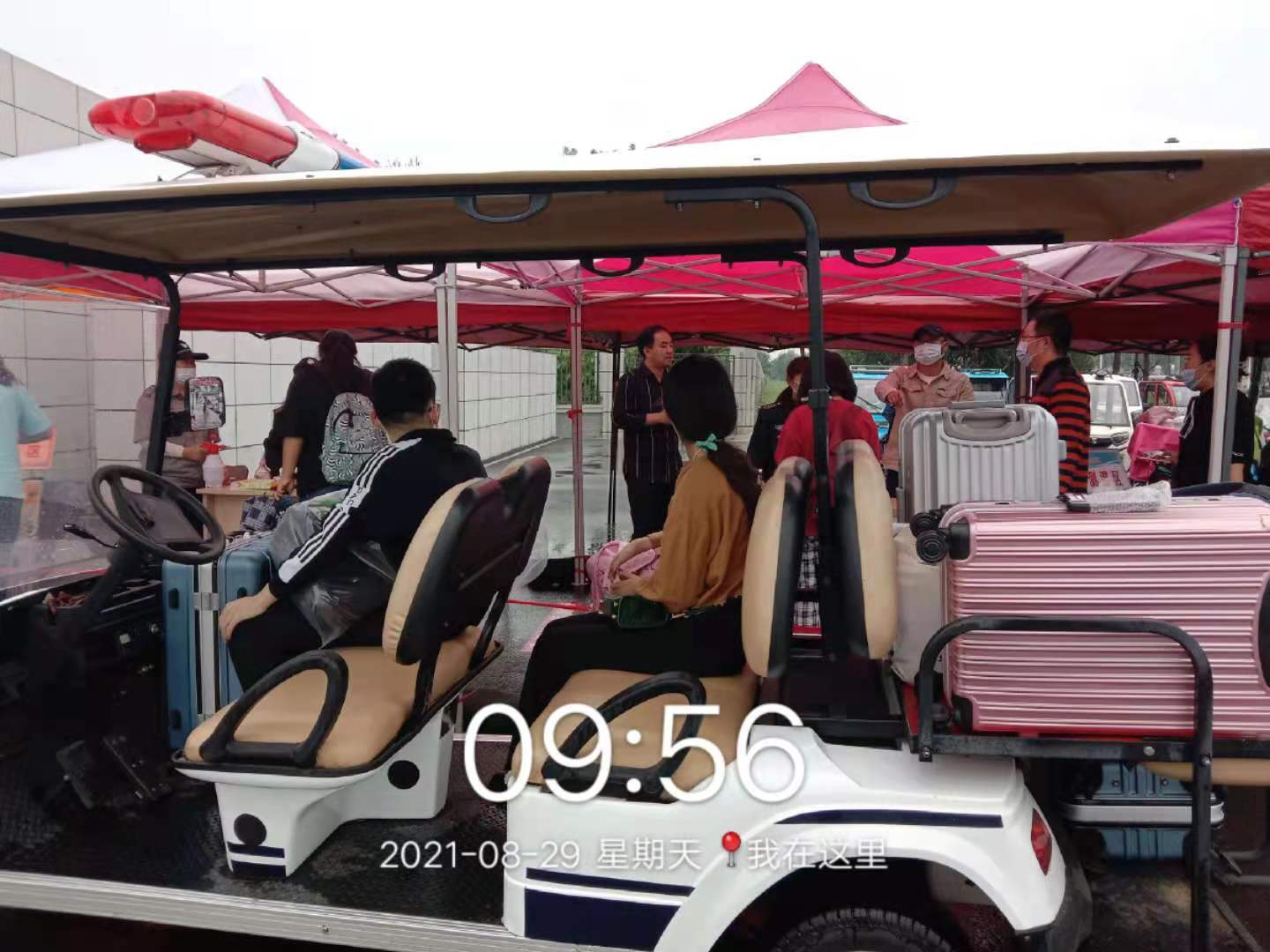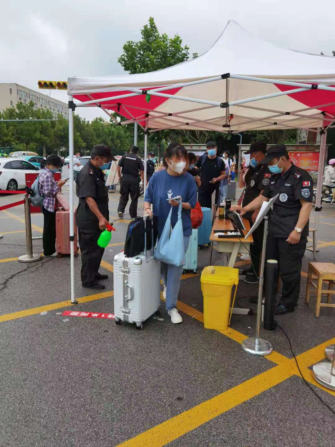 学生返校期间,三个校区的安保人员严格执行校门管控程序,按照“一查二核三测四通过”的要求,查看学生健康码,核实学生证件信息,测量学生体温,让返校学生和家长感到安心、放心。因送行人员按规定不得入校,返校学生携带大量行李,在做好秩序维护和进校引导等本职工作的前提下,保卫处安排工作人员主动帮助返校学生接驳搬运行李,出动警用巡逻车将学生及行李送到宿舍,让返校学生体会到回家的亲切与温馨。