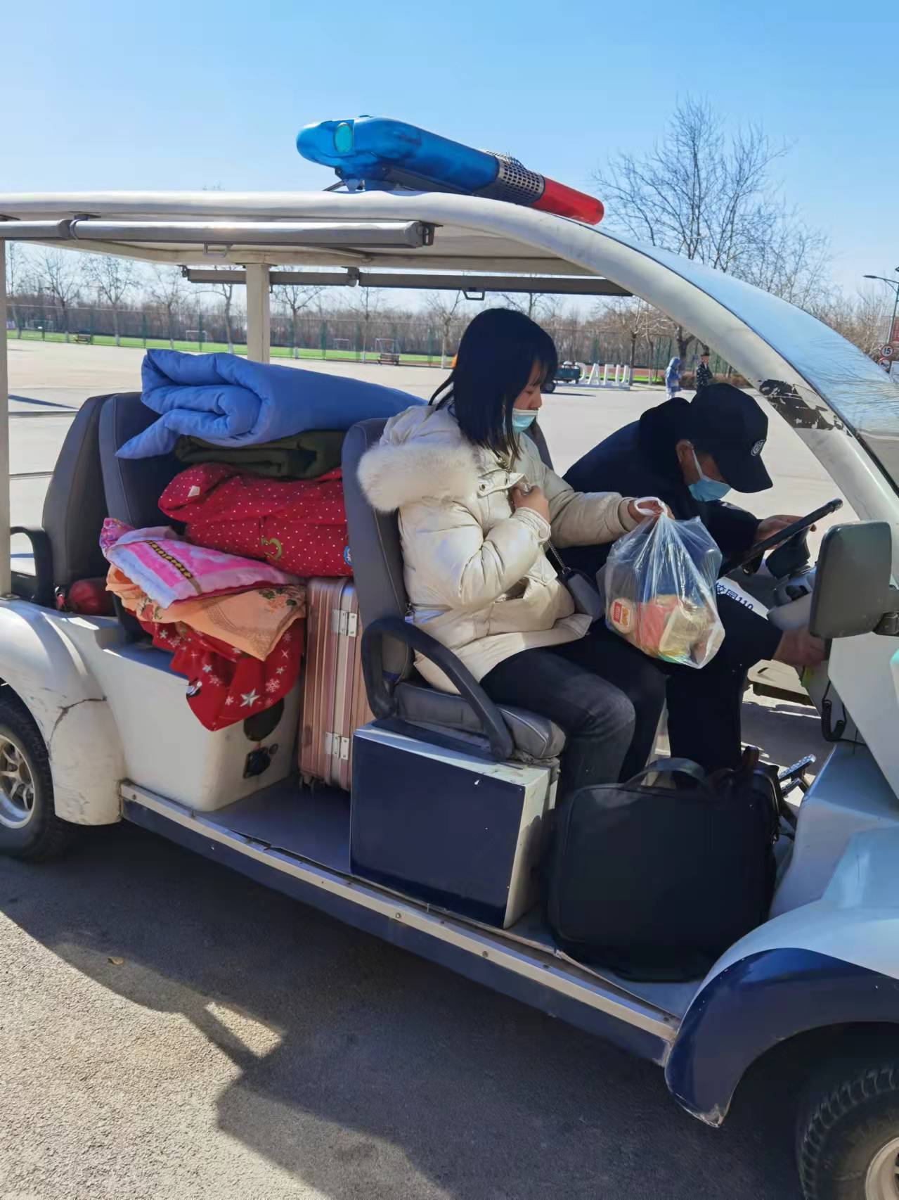 学生返校期间,保卫处全体工作人员热情服务,有序引导查验健康码、行程码。因家长及陪同人员、车辆按规定不得入校,返校学生携带大量行李,在做好秩序维护和进校引导等本职工作的前提下,保卫处工作人员主动帮助返校学生搬运行李,让返校学生体会到回家的亲切与温馨。