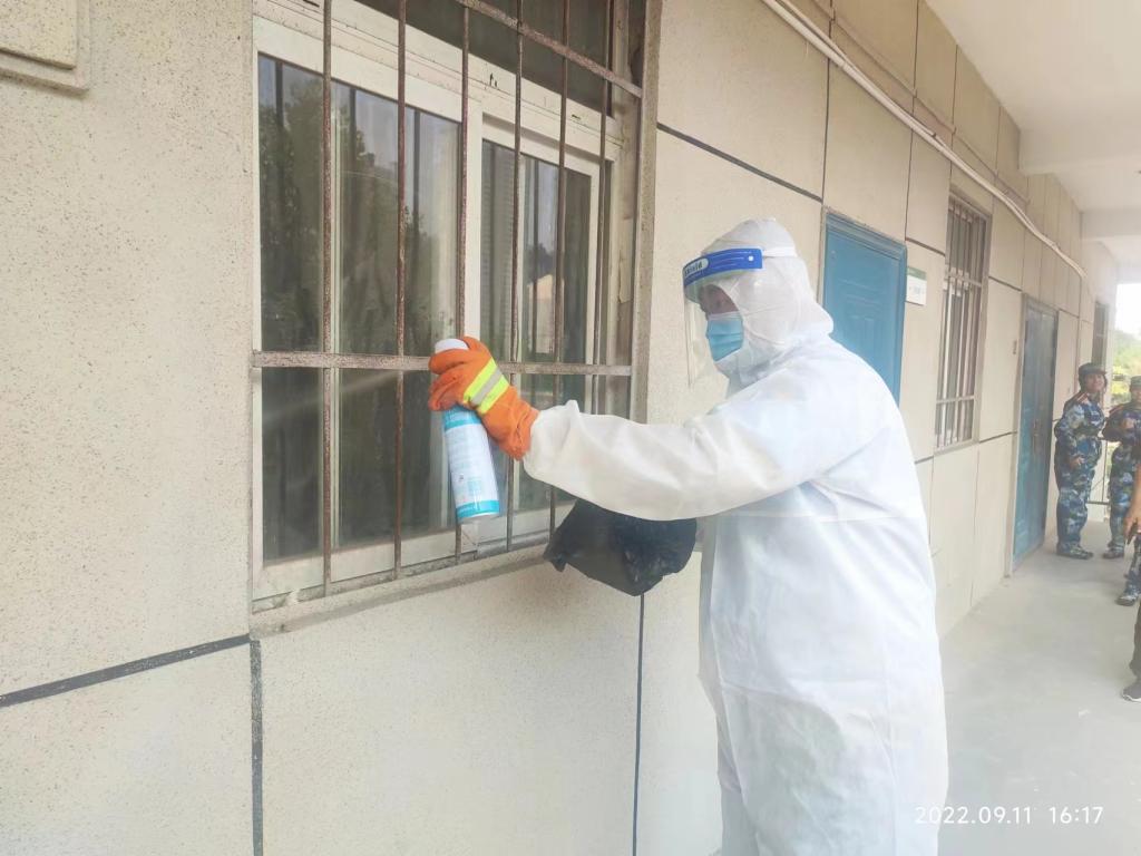 9月11日,有师生向保卫处反映,卫生服务中心二楼通道一窗户有马蜂窝。保卫处王振生处长马上组织人员现场查看,马蜂窝在窗户一角安营扎寨,离地面仅1米5左右,易受到惊扰袭击过往师生,存在重大安全隐患,必须立即清除。保安先封锁现场,然后保安主管孔立东身着专业防护服,做好安全防护措施后,采用杀虫剂喷洒、套袋摘除方法全面扑杀,将马蜂窝成功摘除。