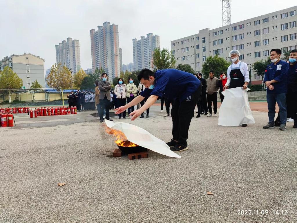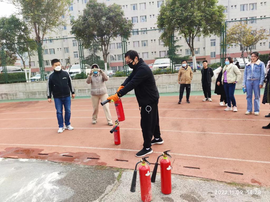 进一步学校消防教育培训和安全宣传常态化,增强全校师生员工的消防安全素质,保卫处11月9日在济南校区开展以“抓消防安全,保高质量发展”为主题的消防安全培训灭火实操演练活动。实验室管理人员和物业公司、餐厅从业人员参加活动。