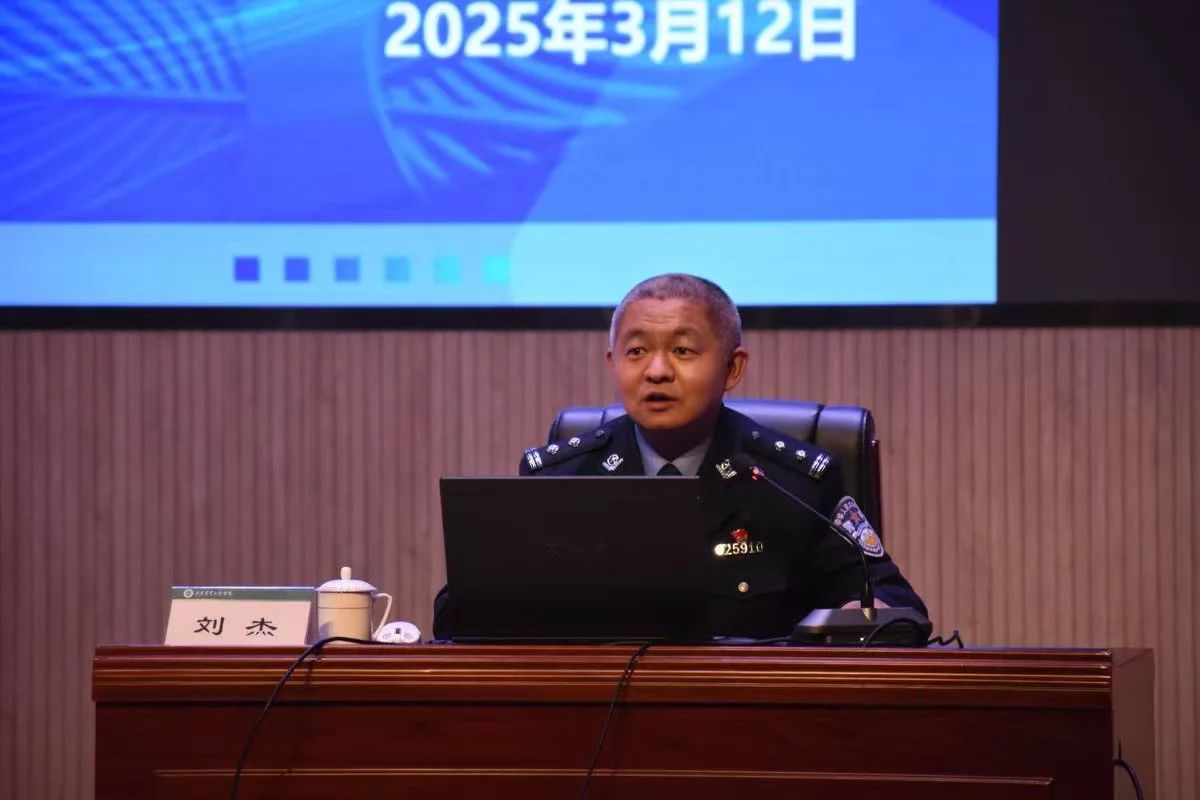 本次培训由淄博市公安局刑侦支队刘杰警官主讲,刘警官从校园高发案例入手,详细讲解了电信网络诈骗的常见类型、手段特点与防范措施,深入剖析了常见的诈骗套路,使同学们进一步认清了电诈的本质,深刻认识到了诈骗手段的多样性和隐蔽性,提升了防范意识与应对能力。