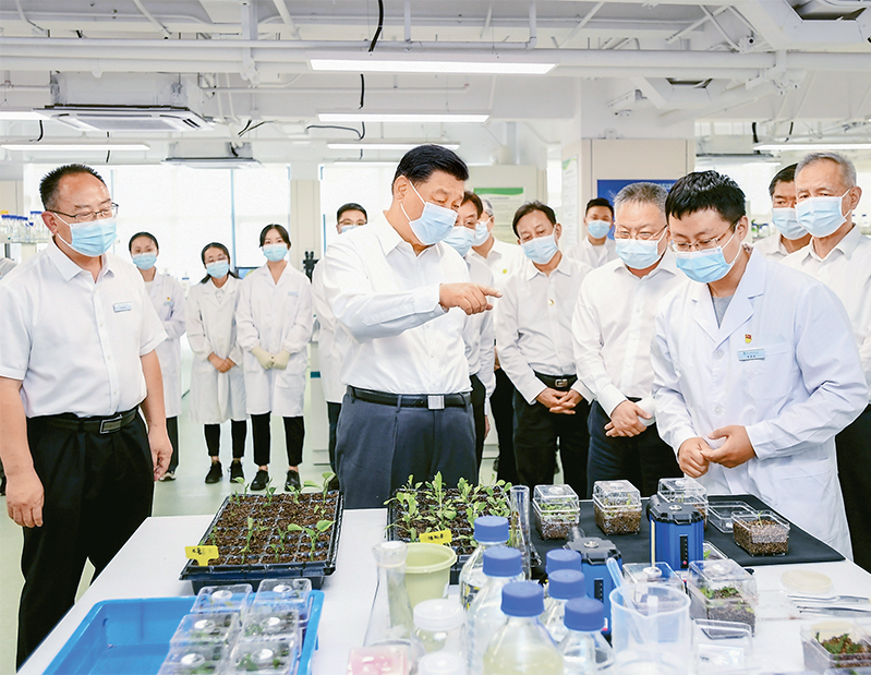 2022年4月10日至13日,中共中央总书记、国家主席、中央军委主席习近平在海南考察。这是10日下午,习近平在位于三亚市崖州湾科技城的崖州湾种子实验室考察。 新华社记者 谢环驰/摄