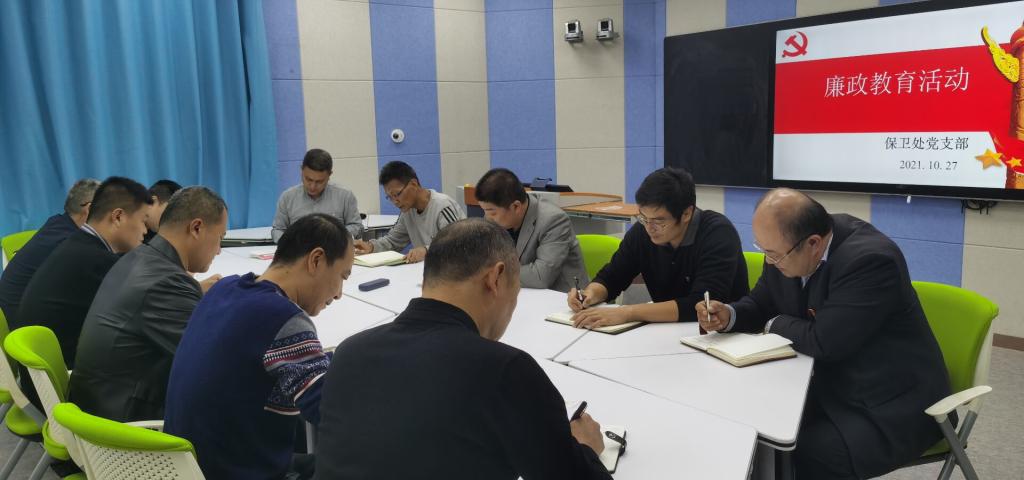 10月27日下午,保卫处党支部在办公楼六楼智慧教室组织召开党风廉政教育工作专题会议,保卫处全体党员职工参会,党支部书记王振生同志主持会议。