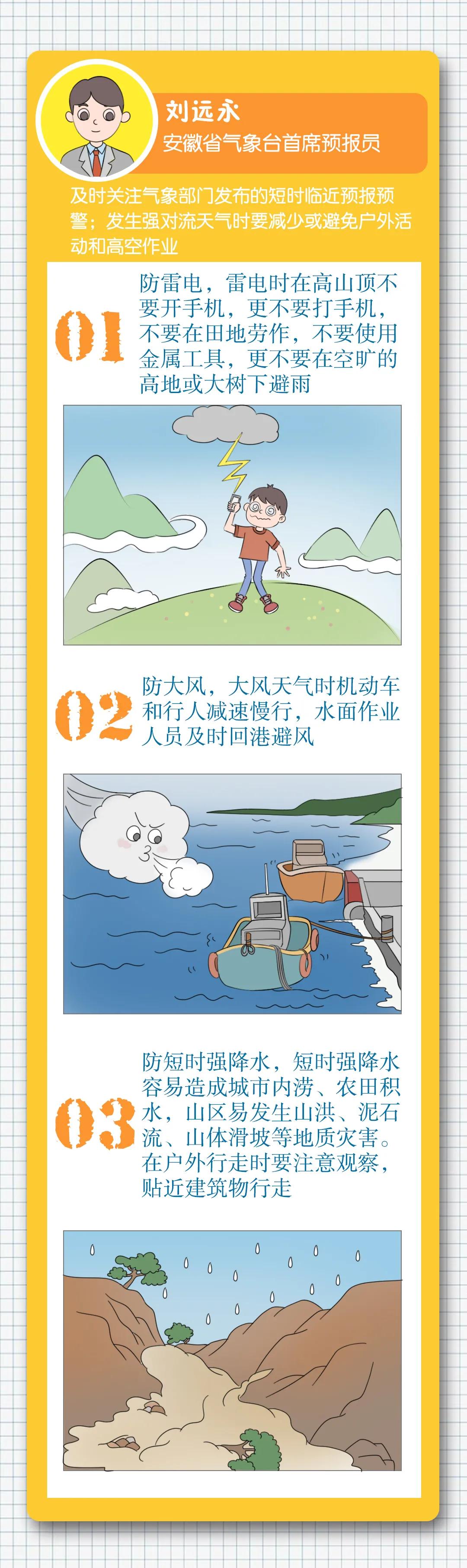 对于防雷电、防大风,刘远永也有一些提示。“雷电时在高山顶不要开手机,更不要打手机,不要在田地劳作,不要使用金属工具,更不要在空旷的高地或大树下避雨。”他说,大风天气时机动车和行人减速慢行,水面作业人员及时回港避风。