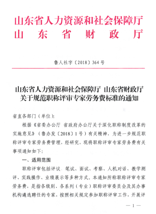 山东省人力资源和社会保障厅山东省财政厅 关于规范职称评审专家劳务费标准的通知