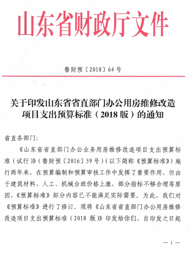 关于印发山东省省直部门办公用房维修改造项目支出支出预算标准(2018版)的通知