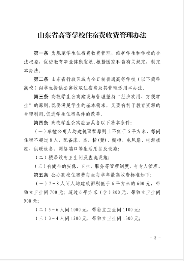 关于印发山东省高等学校住宿费收费管理办法的通知