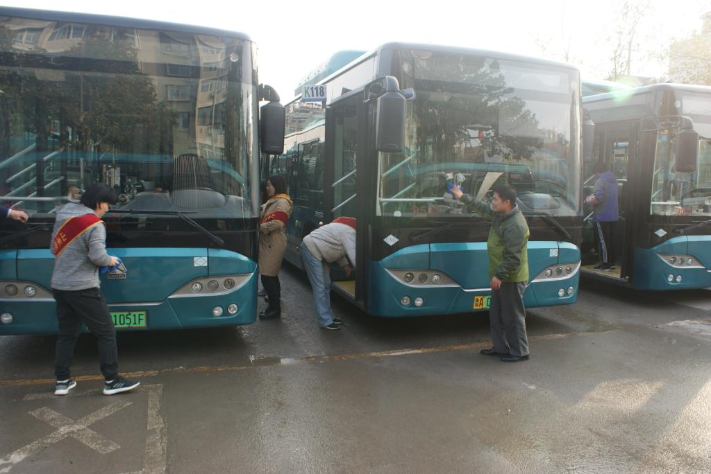 为扎实开展好“不忘初心、牢记使命”主题教育,11月7日下午,财务处党支部联合保卫处党支部、资产管理处党支部开展志愿服务主题党日活动,具体安排是到今年会附近的济南公交公司祝甸停车场对公交车及场地进行清洁。