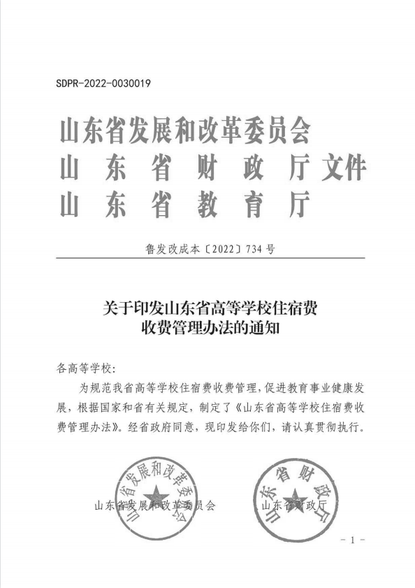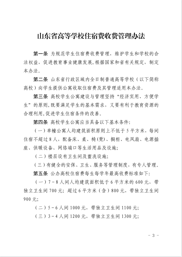 省发改委、财政厅、教育厅联合发文《关于印发山东省高等学校住宿费收费管理办法的通知》