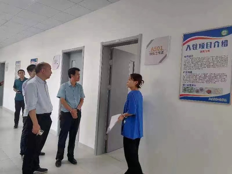 创新创业协会会长徐伟带领赵主任一行人参观创新创业孵化基地并对其基础设施、入驻项目、日常工作等进行了深入介绍。创新创业学院指导老师籍庆合就校企合作、校地融合、大学生创生创新创业孵化基地建设等等问题进行了多方面、多维度、深入性的讲解。张忠峰院长强调要充分利用驻周高校丰富的人力资源,响应淄博市市委市政府的号召,发挥校地优势,提高大学生就业创业率。