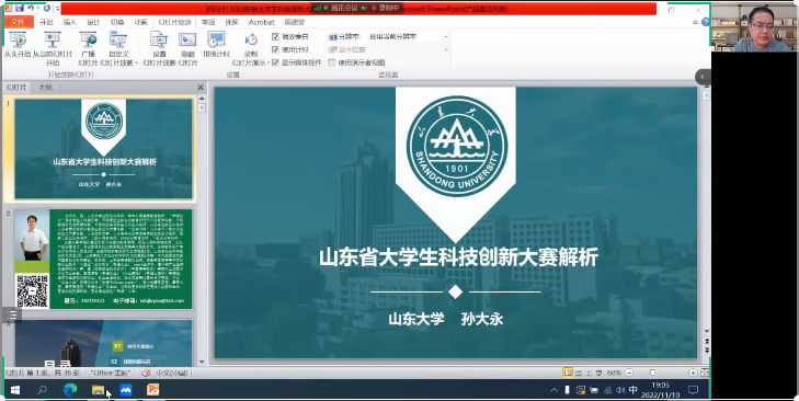 校外专家孙大永教授对山东省大学生科技创新大赛进行解析,从四个方面全方位的为参会师生详细的解读了本届大赛。校内专家牛贞福教授、段曦博士分享了多年来的参赛经验,从赛事实际出发,引经据典,剖析案例,为师生们带来了生动的一课。