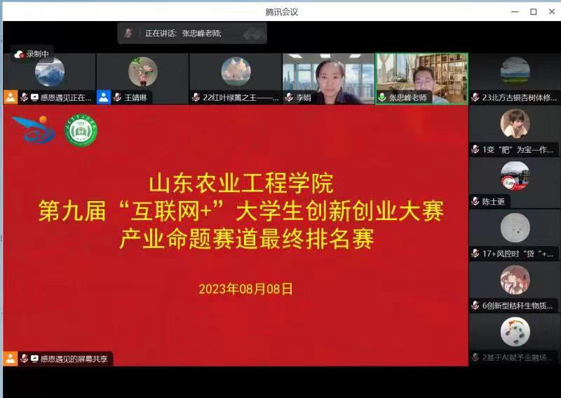 8月8日晚上,我院通过腾讯会议的形式举办2023年“互联网+”大学生创新创业大赛产业命题赛道最终排名赛。比赛邀请企业家代表出席大赛并担任评委,比赛由创新创业学院院长张忠峰主持,共有300余名师生在线观摩了比赛。