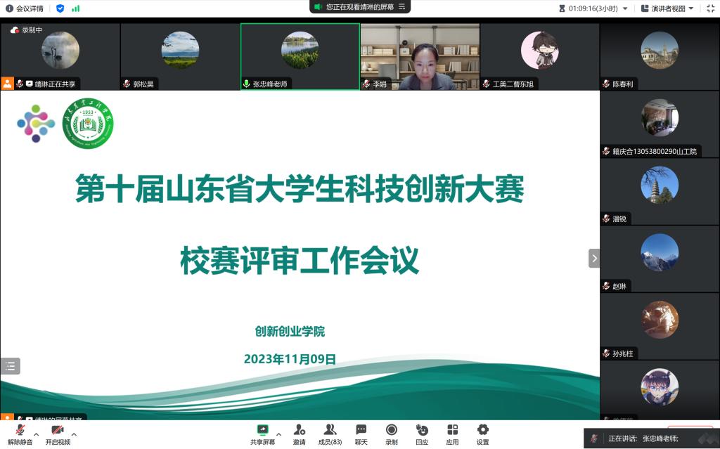 2023年11月9日,我院召开第十届山东省大学生科技创新大赛校赛评审工作会议,部署相关工作安排。创新创业学院院长张忠峰及各二级学院相关工作人员等出席本次会议。会议由创新创业学院副院长李娟主持。