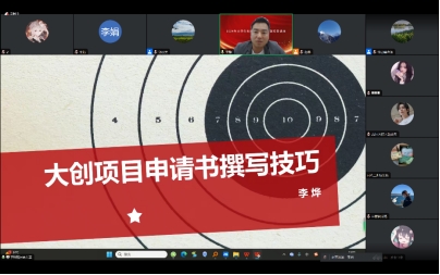 李烨对“大创”赛事进行解读,详细指导了大创项目申请书撰写技巧和注意事项,详细解答了参会师生所提的疑问及困惑。