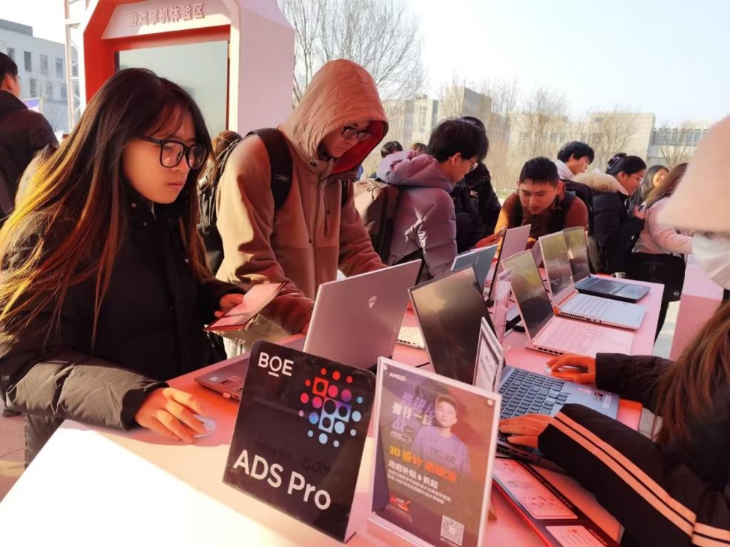 智能学习体验区智能工具软件丰富,同学们热情参与体验,创新思维在操作与交流中得到进一步激发。产品体验区热闹非凡,游戏本以强大性能展示三维技术魅力,逼真画面使同学们惊叹,众人积极探讨其在影视、游戏、工业设计等领域的应用,灵感频现。志愿者们穿梭忙碌,耐心答疑,引导活动有序开展。随着夜幕降临,本次数字科技文化节按计划顺利结束。