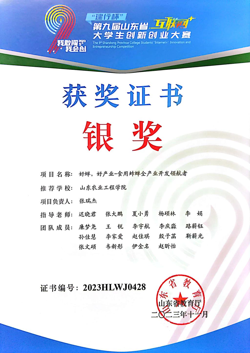 “建行杯”第九届山东省“互联网+”大学生创新创业大赛银奖项目:好蝉,好产业-食用蚱蝉全产业开发领航者