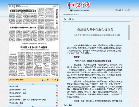 On May 25th, the China Education Daily published a signed article in the news front page, which carried out an in-depth report on SDAEU’s overall promotion of epidemic prevention and control and the development of various school undertakings.