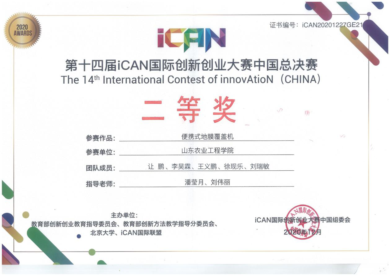 From December 25th to 27th, the 14th iCAN International Contest of InnovAtion (China) Finals and the 2020 Asia-Pacific Innovation Academy (APIA) International Innovation Acceleration Camp hosted by iCAN International Alliance, Asia-Pacific Innovation Academy and other unitswas held in Yuyao, Zhejiang, Innovation Industrial Park. Students of Engineering Innovation Club of SDAEU have excellent performance in the competition. They wonone national second prize in offline competitions,one most popular prize on site, andtwo national third prizes in online competitions.