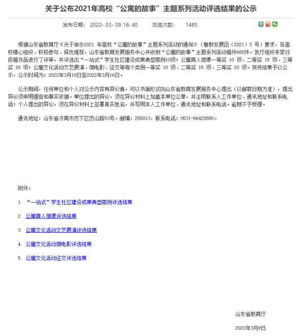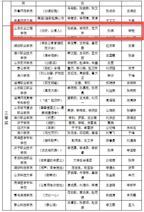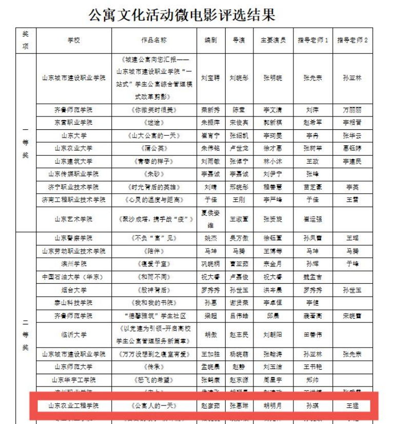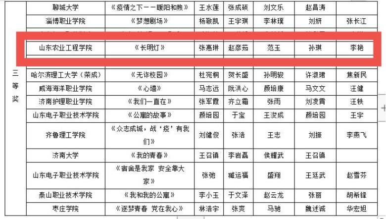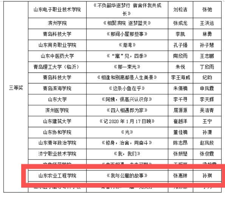 Recently, the Selection Results of the 2021 University "Apartment Story" Theme Series Activities has announced by the Education Department of Shandong, the teachers and students of our school performed outstandingly and won awards in several programs. Among them, Sun Qi and Wang Meng won the second prize, three teachers including Li Yan won the third prize, three students including Zhao Yanru won the second prize, and six students including Zhang Huilin won the third prize.