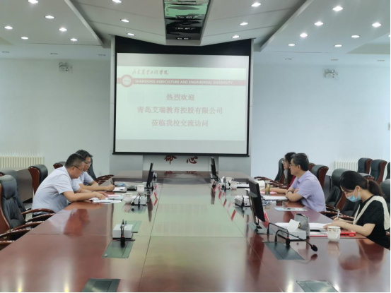 On the afternoon of July 9th, Li Xin, Chairman of the Qingdao AERY Education Holdings Co., Ltd., and Liu Peng, the executive vice president, visited SDAEU. Vice President Zhang Zhaoming met with them. Men Huihua, Deputy Directorof the International Affairs Office and staff attended the meeting.