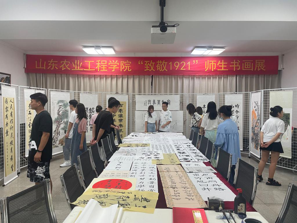 To celebrate the 100th anniversary of the founding of the Communist Party of China, review the arduous entrepreneurial history of the CPC and show the great achievements that have attracted worldwide attention. On the morning of June 30, sponsored by the Organization Department of the Party Committee, Youth League Committee, and the Next Generation Working Committee of our school, the "Salute 1921"-Painting and Calligraphy Exhibition of Teachers and Students to Celebrate the 100th Anniversary of the Founding of the CPC, organized by the Academy of Painting and Calligraphy Association, was exhibited on the Jinan campus.