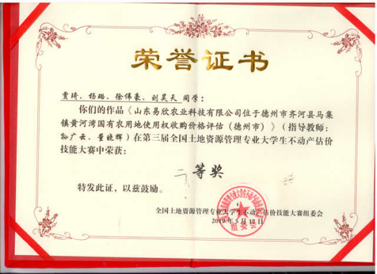 As a core curriculum, Real Estate Appraisal of Land Resource Management major, always keeps pace with industry development needs, constantly innovates teaching methods and updates teaching content, and especially pays attention to the cultivation and exercise of students' valuation practice ability. Through this competition, we fully demonstrated the innovation and innovation ability of our students, improved the popularity of our school's Land Resource Management specialty, and played a positive role in promoting the teaching level and professional construction of themajor in the future.