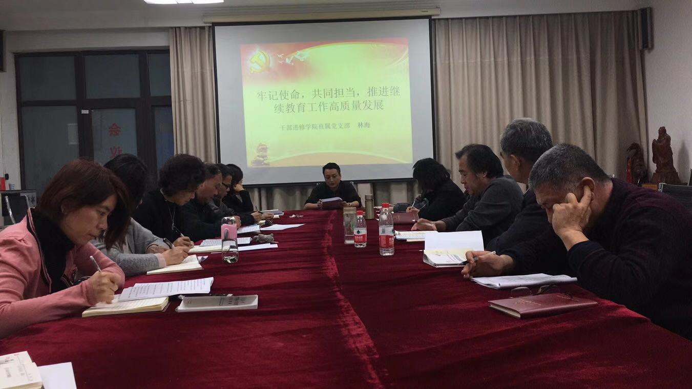 2019年11月14日,干部进修学院直属党支部在办公楼二楼会议室开展支部书记、党员处级干部讲党课活动。