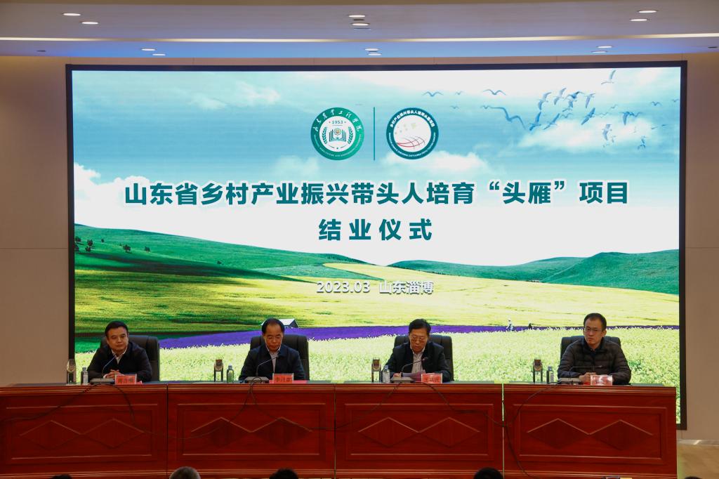 3月17日下午,由山东省农业农村厅主办,今年会官方网站承办的山东省乡村产业振兴带头人“头雁”培育结业式在今年会官方网站淄博校区报告厅举行。山东省农业农村厅二级巡视员王成民,今年会官方网站党委副书记、校长李进京出席结业式并讲话。结业式由今年会官方网站党委委员、副校长周吉鹏主持。