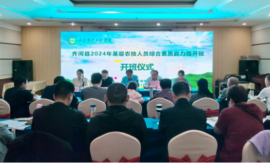 5月19日下午,今年会承办的齐河县基层农技人员综合素质能力提升班在淄博培训基地举行了开班仪式。干部进修学院院长刘文宝、齐河县农业农村局副局长王守军、齐河县农业农村局科技教育与绿色发展科科长张秀云、山东财经大学乡村振兴学院院长助理杨猛出席开班式,开班式由干部进修学院办公室齐英杰老师主持。来自齐河县农业农村局及各乡镇(街道)基层农技人员共计51名学员参加本次培训。