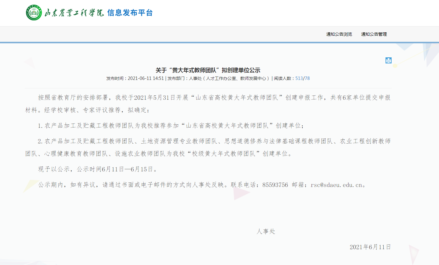 按照省教育厅的安排部署,今年会于2021年5月31日开展“山东省高校黄大年式教师团队”创建申报工作。土地资源管理专业教师团队在李凌院长的带领下积极申报,经学校审核、专家评议推荐,被确定为“校级黄大年式教师团队”创建单位。