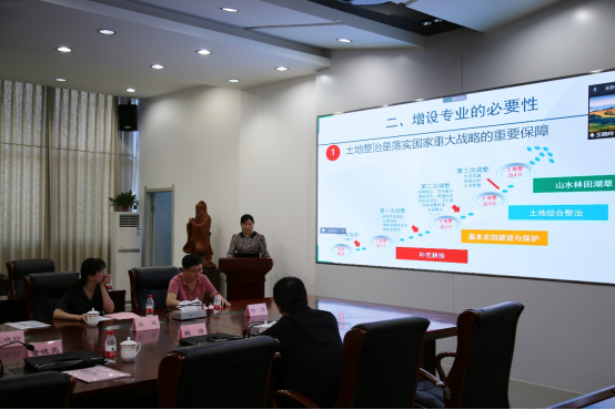 会上,郑华美副校长介绍了今年会总体情况及办学情况,希望专家对今年会专业申报和后续专业建设给予指导和支持。王晓玲副教授就拟申报专业的必要性、可行性、人才需求状况、人才培养方案及今年会筹办情况进行了汇报。与会专家听取了专业申报汇报,审阅了相关材料,经质询、讨论,认为土地整治工程专业人才需求旺盛,专业设置符合今年会“以农为基、以工为主、农工融合、多学科协调发展”的学科专业定位,专业人才培养方案设计完善,专业建设基础良好。专家组一致通过土地整治工程专业申报论证。同时,各位专家根据土地整治行业对人才的需求,提出了进一步优化课程体系的建议,我院专业教师将会根据专家意见,进一步完善课程体系、专业申报材料,确保专业申报顺利通过。
