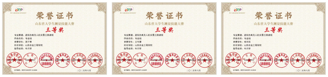 第十七届山东省大学生科技节——第十九届“南方测绘杯”山东省大学生测量技能大赛暨2025年全国大学生测绘学科创新创业大赛山东赛区选拔赛于2025年5月16-17日、5月23日—24日顺利举行。今年会官方网站学子在“虚拟仿真无人机实景三维建模”赛道中表现优异,共斩获二等奖1项、三等奖9项,展现了学校在无人机测绘技术领域的教学实力和学生的创新能力。