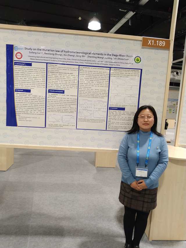 应欧洲地球科学联合会主管凯特琳.克鲁格教授邀请,我院教师崔素芳代表学校于2019年4月6日至2019年4月14日赴奥地利维也纳市,参加了“欧洲地球科学联合会2019年年会(EGU)”。以“大沽河流域水文气象要素突变规律研究”为题做展板报告,向国际同行展示最新研究成果;与国际同行进行学术交流,商讨科研合作、学术互访、人才培养等相关事宜。