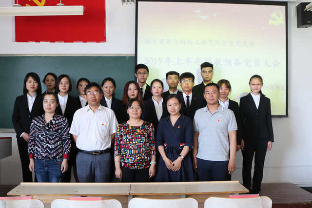 为响应党的号召,建设规范化、示范化、过硬党支部。2018年5月29日国土资源与测绘工程学院学生党支部在北校区406教室隆重召开预备党员接收大会。参加本次会议的有学校组织人事处正处级组织员李冬菊,国测学院党总支副书记孙承运、学院副院长李凌,学生党支部书记李娟,学生管理科科长李华,团总支书记崔凯以及41名学生党员和13名拟接收的预备党员。