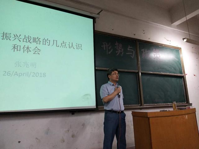 6月9日,张兆明副校长以“关于乡村振兴战略的几点认识和体会”为题给国土资源与测绘工程学院2015级本科学生讲授了一堂“形势与政策”课。张校长结合党的十九大报告,分析了“乡村振兴战略”提出的时代背景、阐明了“乡村振兴战略”的价值和意义。