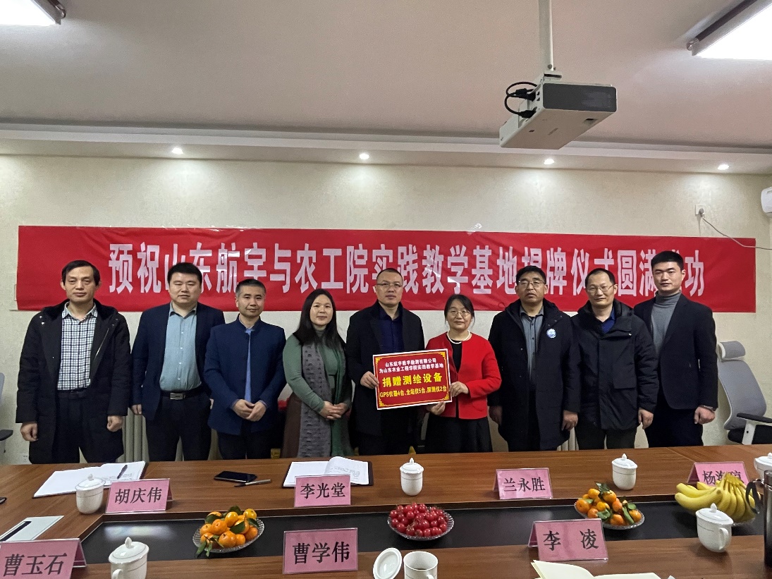 实习基地签约挂牌和测绘仪器捐赠仪式在李院长和蓝总的主持下先后开展,气氛浓烈,宾主双方共同在现场合影留念并共同祝贺。国测学院与山东航宇数字勘测有限公司所举行的本次活动,是我院近几年校企合作办学有效开展的一个见证,本次活动也必将是一个新的开始,助推我院在以后的校企合作办学过程中更加规范、将校企合作办学推向纵深发展。