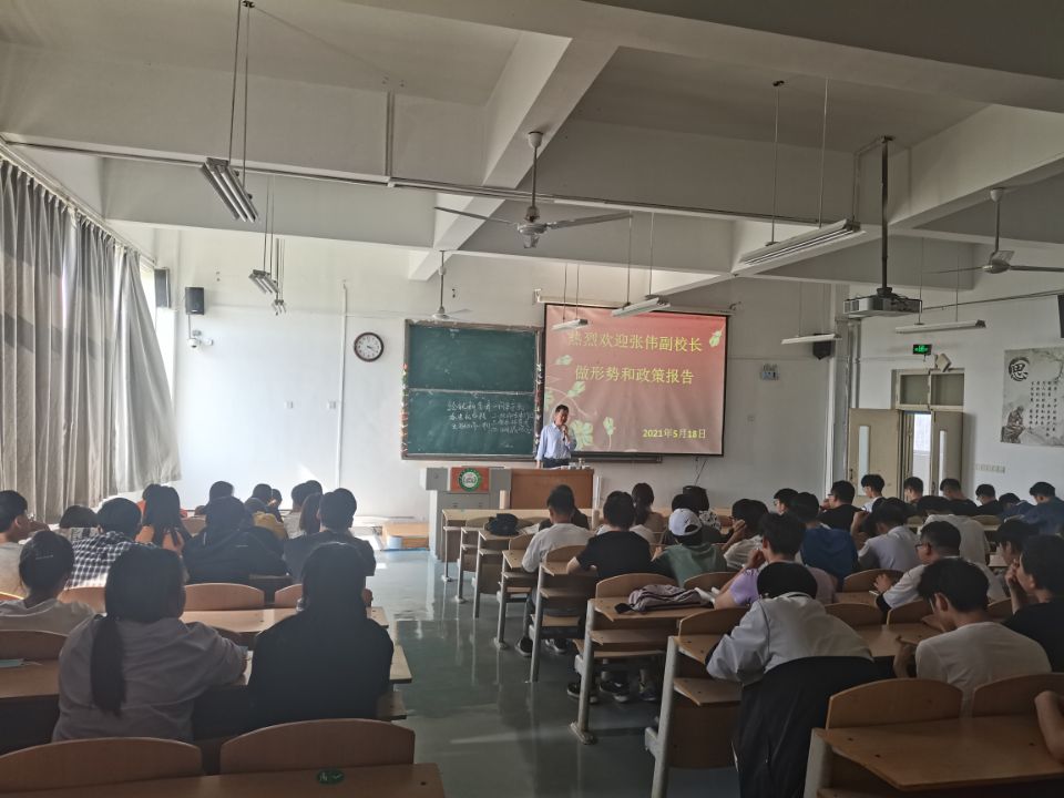 2021年5月18日下午2:00,校党委委员、副校长张伟来我院做“形势和政策”报告,张校长以“百年之大变局”为起点,分析百年剧变,从党史讲到“十四五”规划,以习近平新时代中国特色社会主义思想为主线,讲“十四五”规划建议稿形成过程。报告是一场形势和政策的报告,是一场典型的思政教育报告,是一场学生学习生活的指导课。引导学生树立“四个自信”,讲中国道路和中国共产党的领导下取得成绩,以规划为主题,号召学生做好职业生涯规划,树立远大理想,明确目标,主动积累,构筑无悔人生。讲座由我院党总支书记孙承运主持,18级测绘、土管专业学生参加了讲座,参加人员达150多人。