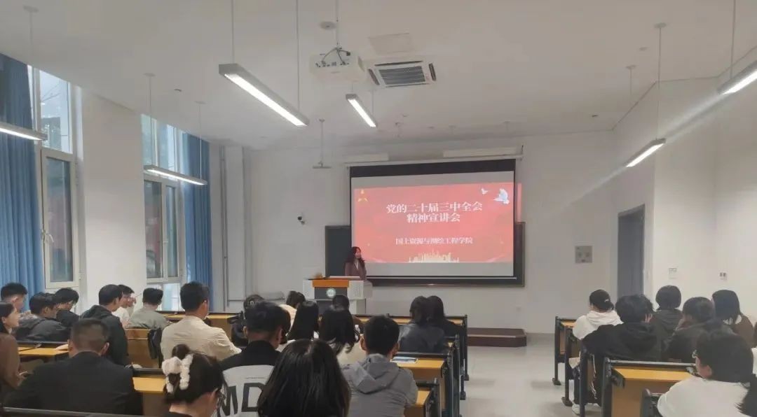 为进一步引导学生深入领会党的二十届三中全会的主题和重大意义,全面学习贯彻党的二十届三中全会精神。2024年10月10日,国土资源与测绘工程学院开展党的二十届三中全会精神宣讲会。学院第六期青马工程“启航班”学员以及学生党员参与此次会议。