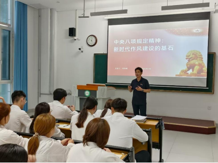 张忠峰重点解读了中央八项规定精神的核心要义。他强调,这一精神的实质在于坚持以人民为中心。无论是精简会议文件、规范公务接待,还是严格公车管理、整治形式主义官僚主义,每一项规定都紧密围绕着人民群众的利益,彰显着党全心全意为人民服务的根本宗旨。张忠峰院长提到,“新时代的青年学子,应树立正确的价值观和行为准则,为将来步入社会打下坚实的作风基础”。