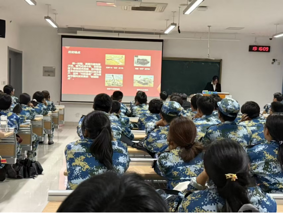 在“抗日战争历史回顾”环节,宣讲聚焦英雄人物事迹,选取杨靖宇、赵一曼等革命先烈的感人故事作为切入点,并重点介绍了平型关大捷、台儿庄战役等经典战例中青年一代所展现出的英勇无畏与责任担当。引导新生铭记历史、缅怀先烈,自觉传承不畏艰难、勇于奉献的红色基因与爱国精神。