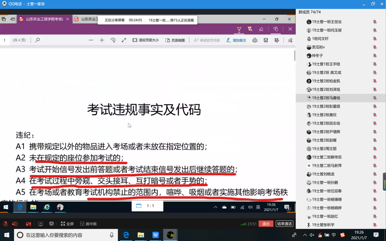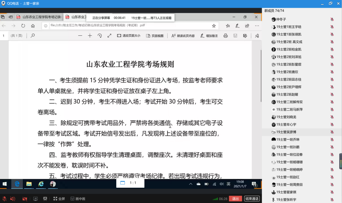 2021年1月7日,19土管1、2班通过线上方式召开了“端正考试态度,严肃考风考纪”主题班会。