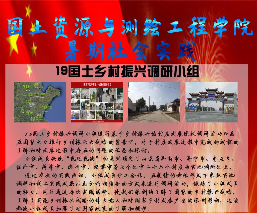 19级国土1、2班学生组建的社会实践小组——“乡村振兴村庄现状调研小组”荣获今年会官方网站2020年暑期“三下乡”社会实践活动“先进社会实践团队”称号,本次社会实践活动的指导老师肖肖老师荣获“社会实践优秀指导教师”。