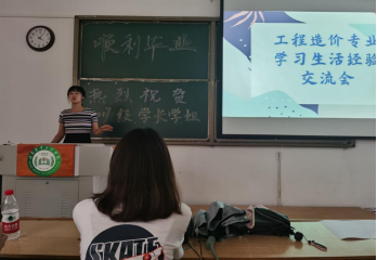 为帮助同学们进一步明确学习目标和方向,促进我院良好的学习氛围,2021年6月24日上午,我院20级工程造价专业在教学楼2-1教室举行了学习生活经验交流会。交流会由班主任武华宝老师邀请了张雯、孙梦鸽等5名造价工程专业的优秀毕业生分别交流了大学四年的学习、生活感悟以及英语四六级的学习心得和考研经验,交流会还特邀了17级土地资源管理专业的孟鑫同学分享了英语雅思考试的学习心得以及申请国外研究生留学的学习规划和学习经验。