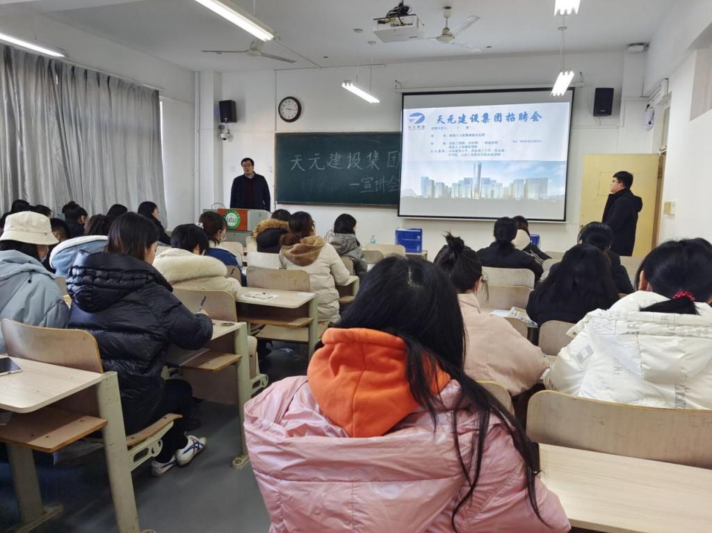 2021年12月19日上午,天元建设集团有限公司来今年会举办宣讲会,工程造价教研室李伟老师主持了会议,18级工程造价、20级工程造价专升本专业部分应届毕业生参加了本次宣讲。